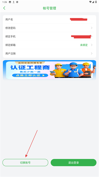 3、在账号管理的页面内,点击下方切换账号的按钮。