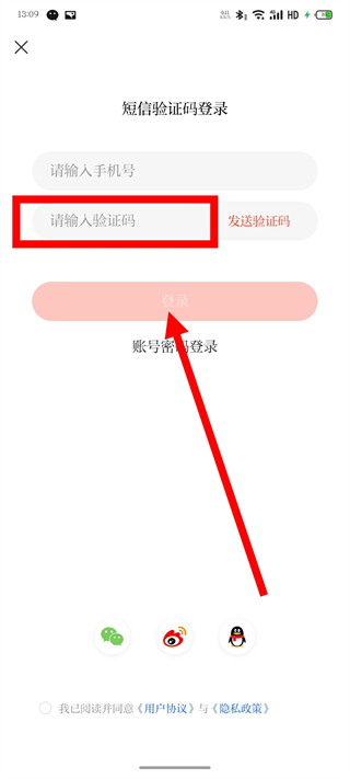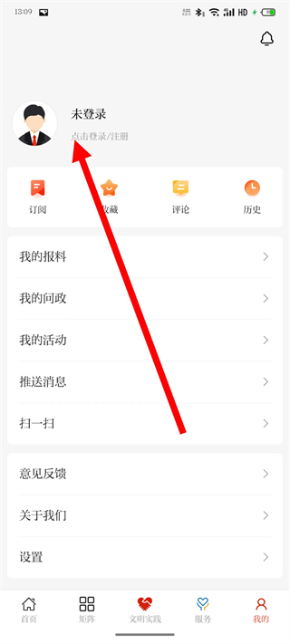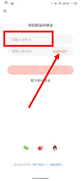2、在个人页面,点击登录注册,进入短信验证码登录界面。
