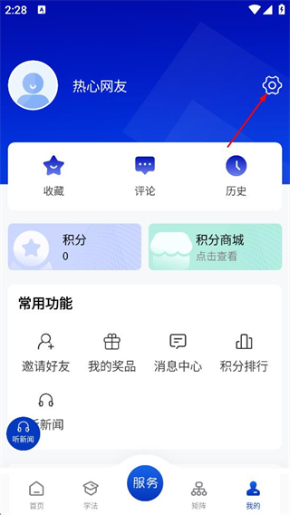 1、在赣法云的服务页面,点击底部我的,进入个人页面。
