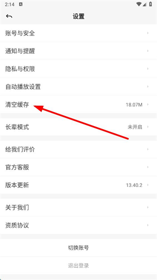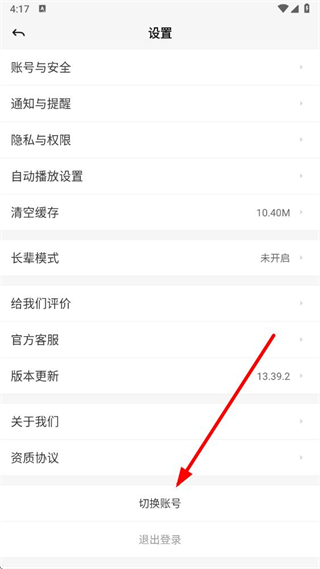 3、进入设置页面后,点击切换账号选项。