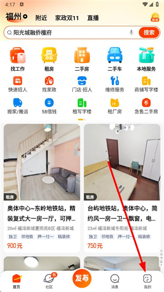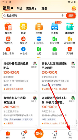 1、打开58同城APP,点击右下角我的进入个人页面。