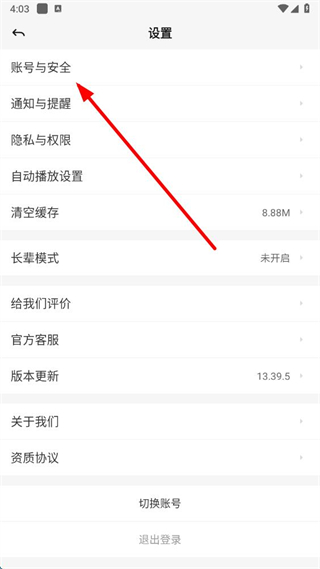 2、在设置界面,点击账号与安全进入其页面。