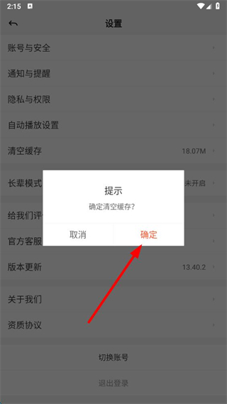 3、在设置页面,找到清空缓存选项并点击,弹出确认提示框。
