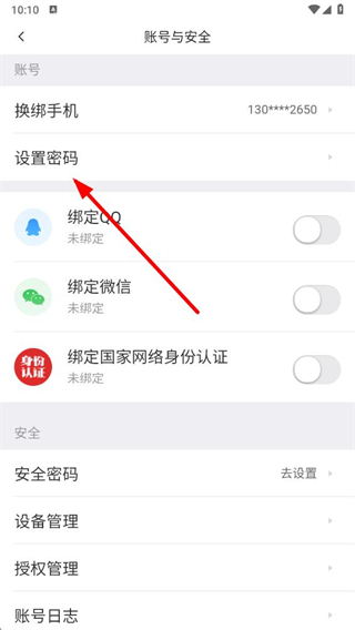 4、在账号与安全页面,点击设置密码选项,按提示完成身份验证后,输入新密码并确认,即可完成密码设置。