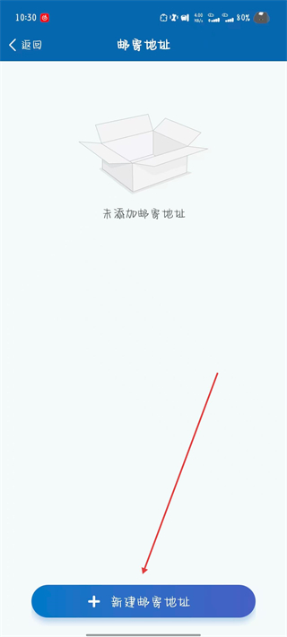 3、进入邮寄地址页面后,点击新建邮寄地址。