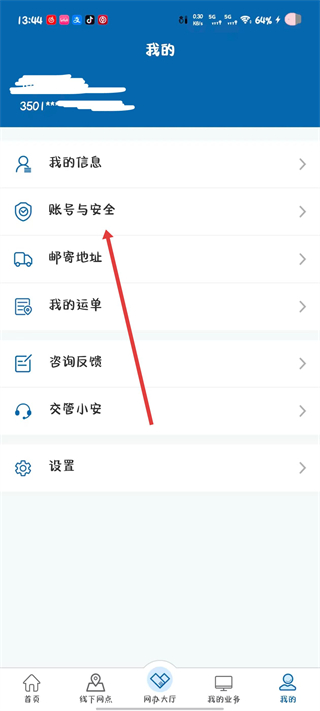 1、打开交管12123APP,进入个人中心,选择账号与安全选项。