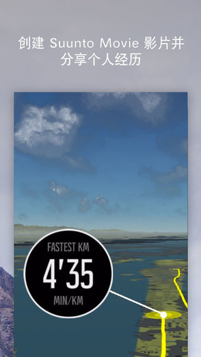 利用为个人训练制作的独特Suunto Movie影片,将个人Move分享到Facebook和Twitter,影片包含融入个人照片的细致三维地图。添加感觉和描述,个性化每项训练活动,使其成为难忘回忆。