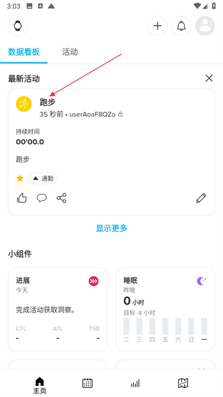 4、添加完成后,可在主页的最新活动区域查看该活动。