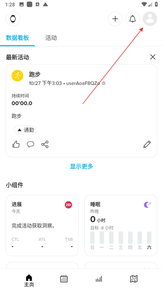 1、打开SUUNTO颂拓APP,点击右上角个人头像图标。