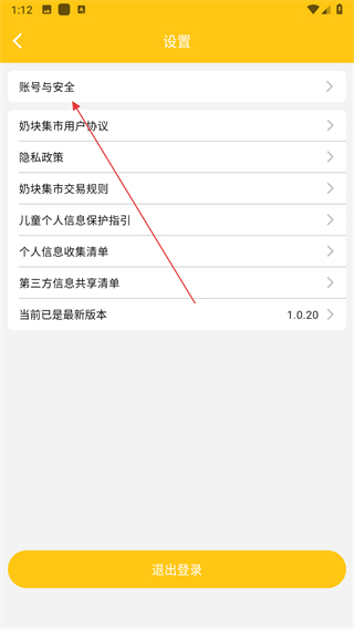 1、打开奶块集市APP,进入个人中心,点击设置图标。