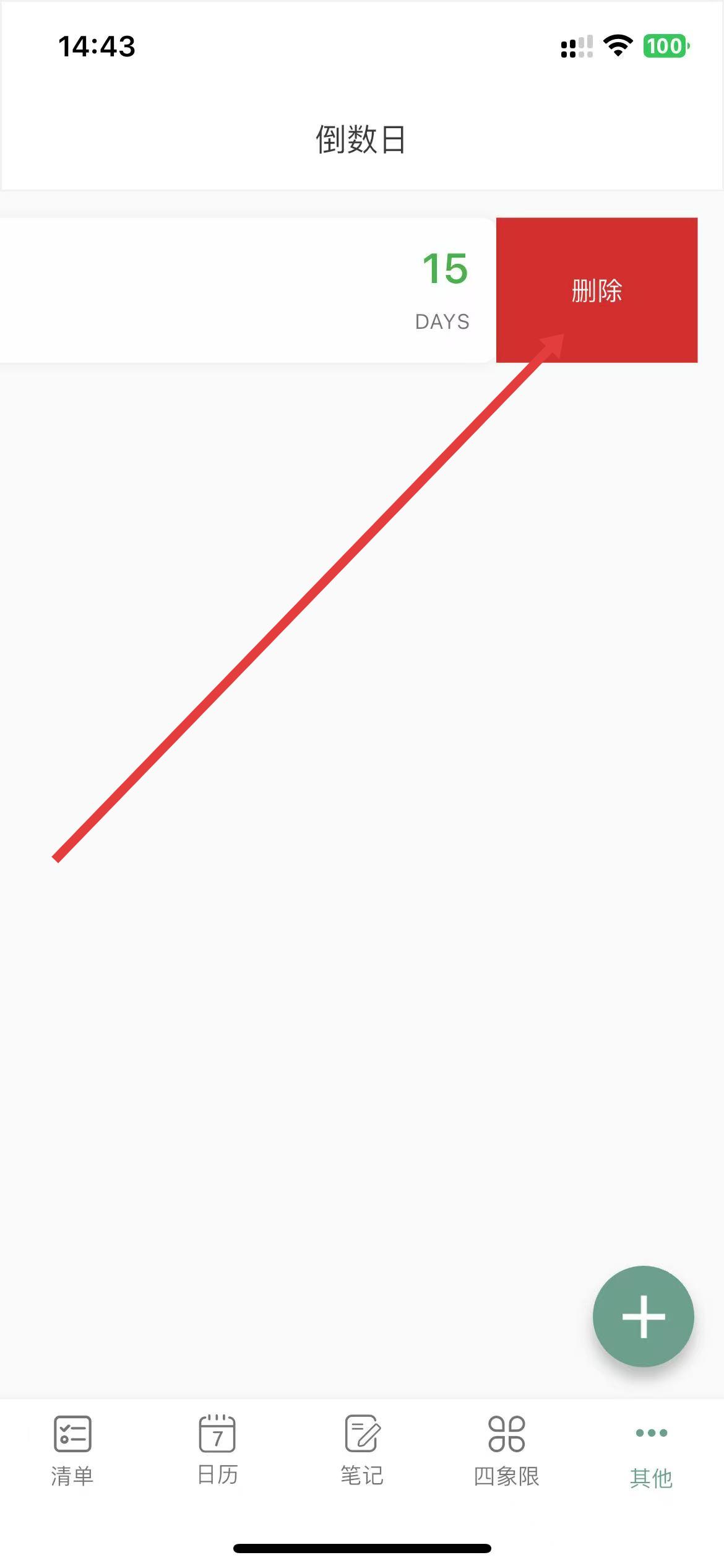 3、找到想要删除的事件,向左滑动该事件,会出现删除按钮,点击它。