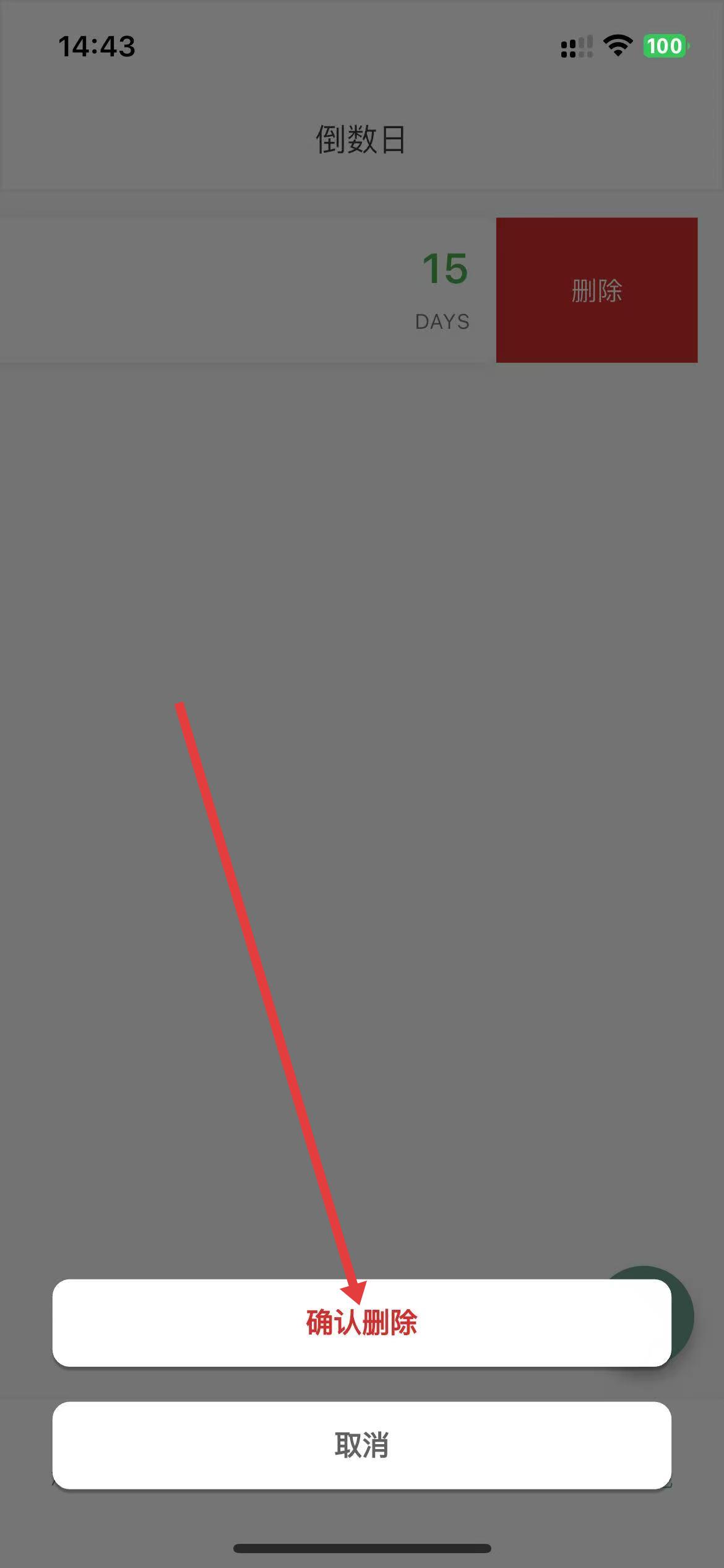 4、在弹出的确认提示框中,点击确认删除,即可成功删除该倒数日事件。