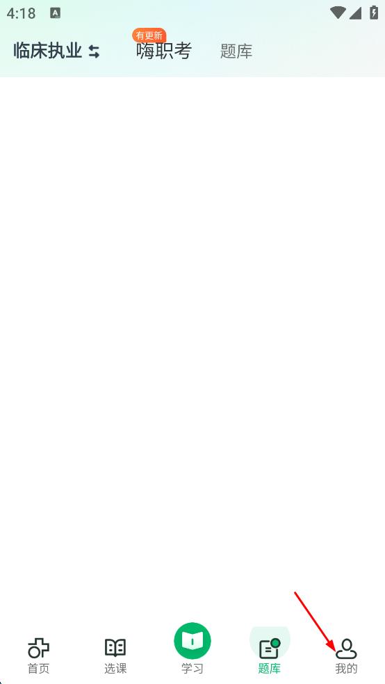 1、在医学直播课堂app的首页,点击底部题库选项,进入题库页面;