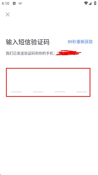 4、在输入短信验证码页面填写收到的验证码,完成账号的登录操作。