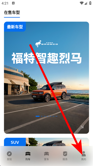 1、打开福特汽车,点击底部的我的,进入我的页面。