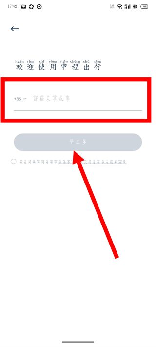 3、在登录页面,输入号码框,填写手机号码,点击下一步。