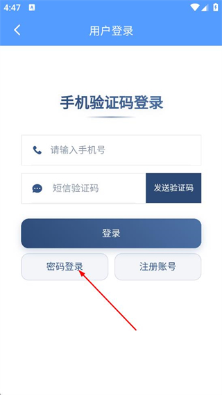 3、在手机验证码登录页面,点击密码登录选项,切换到密码登录页面。