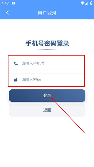 4、在手机号密码登录页面,填写手机号与密码,点击登录,完成账号登录。