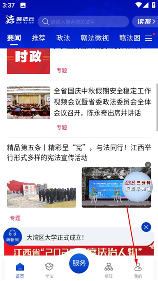 1、在赣法云首页,点击底部的我的选项,进入个人中心页面。