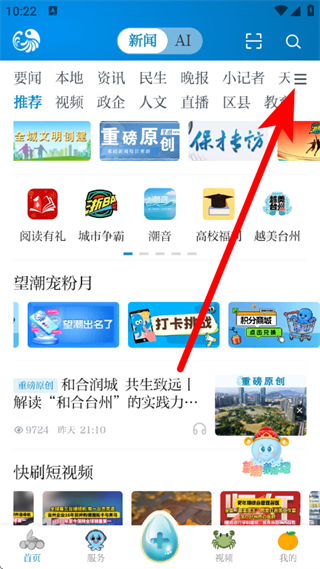1、打开望潮新闻,点击顶部频道栏右侧的横杆,进入频道管理界面。