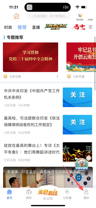 1、在七彩云端首页,点击底部的我的选项,进入个人中心页面。