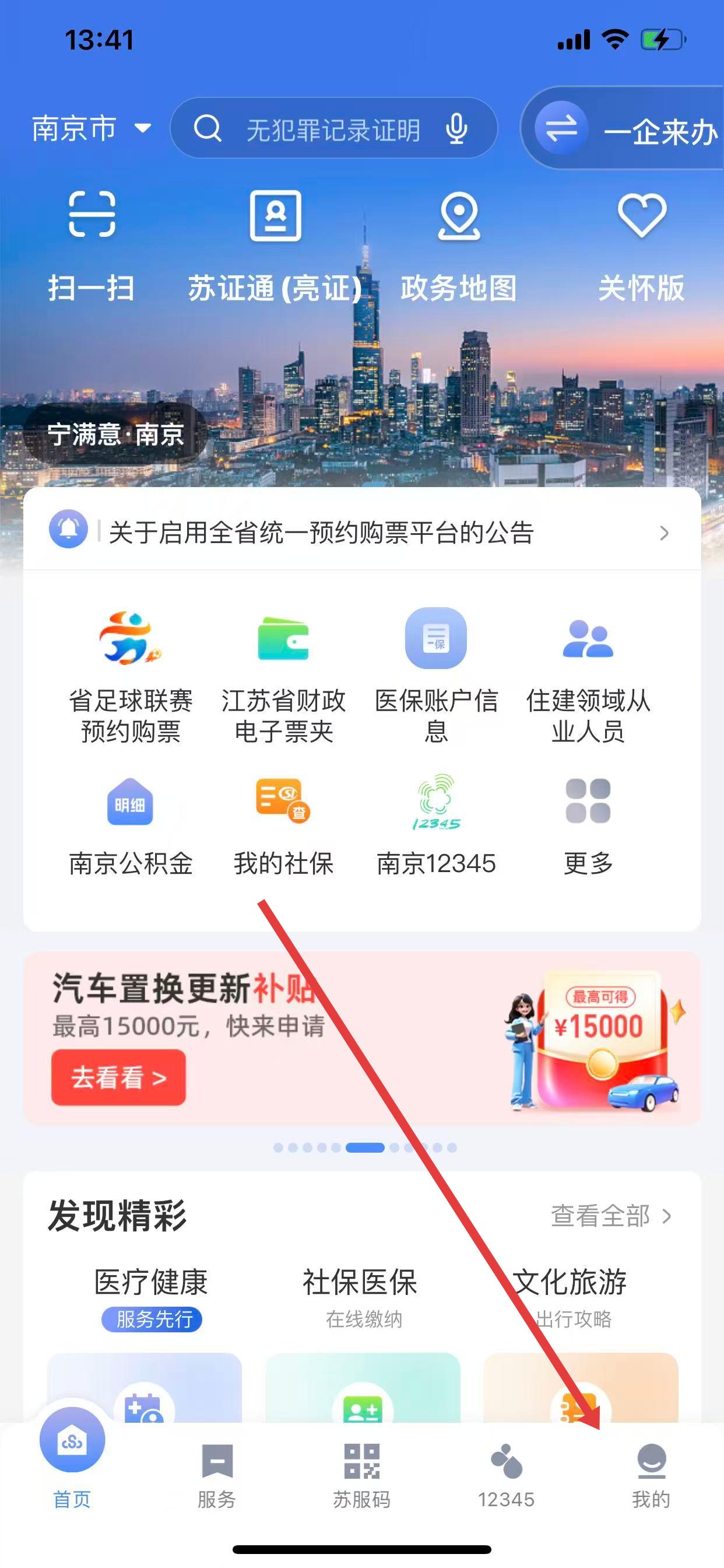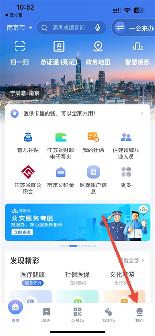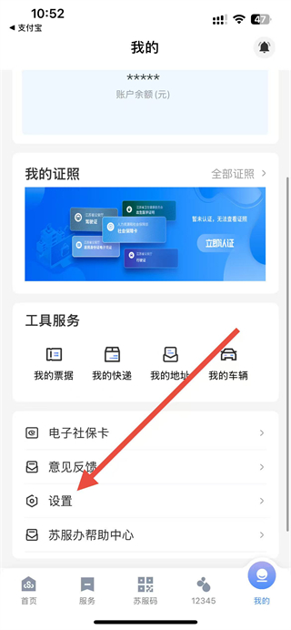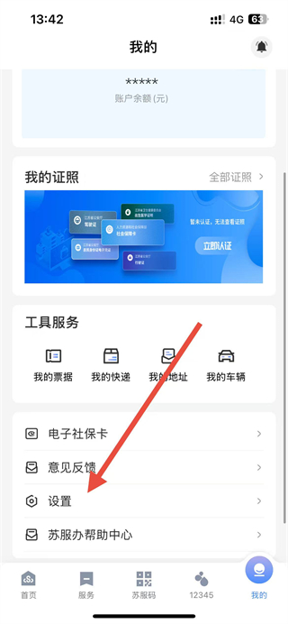 1、在苏服办app底部点击我的,进入个人中心页面。