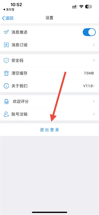 3、在设置页面中,点击底部的退出登录选项,弹出确定要退出登录的提示框。