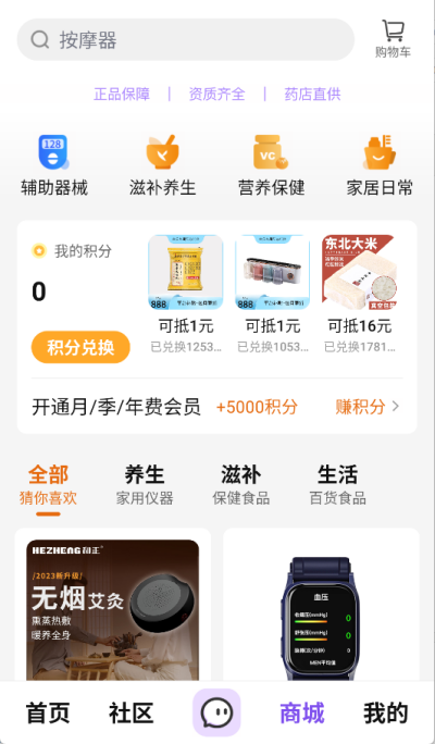 3、点击商城界面,可以在里面购买许多的医疗器械等内容,选择自己感兴趣的辅助器械进行选购,还可以使用积分兑换各种家用物品;