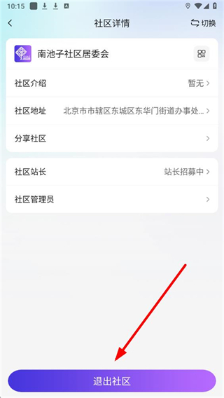 3、在社团详情页面的底部,找到退出社区按钮并点击,即可完成老来健康中社团组织的退出操作。