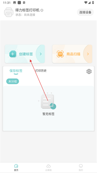 1、打开得力标签打印应用,点击创建标签选项,进入创建标签页面。