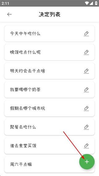 1、在小决定转盘喵的首页,点击底部的决定选项,进入决定列表页面。