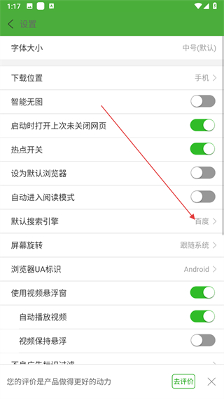 4、进入页面,点击选择更换百度或者搜狗引擎。