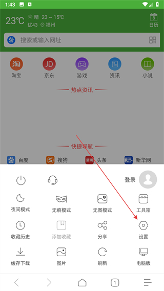 极速浏览器怎么开夜间模式