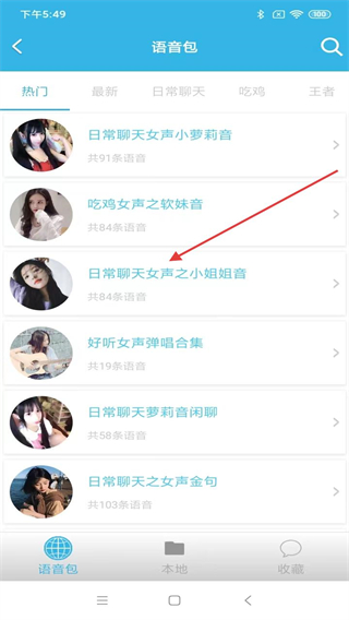 4、在该详情页内,再次选择你要使用的语音包内容,点击名称即可。