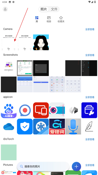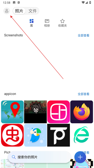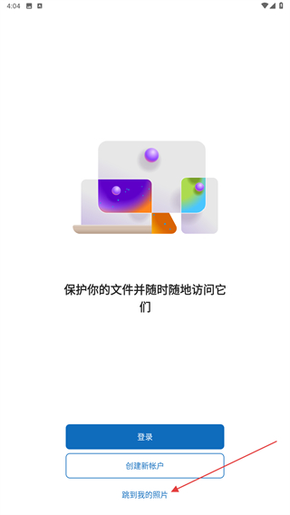 1、打开微软网盘APP,进入时可点击跳到我的照片的按钮。