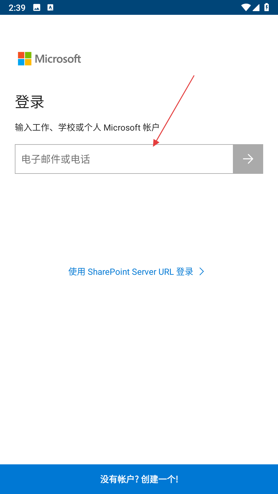 3、在登录页面的电子邮件或电话输入框中,输入工作、学校或个人的Microsoft帐户信息,点击右侧箭头按钮,即可完成OneDrive登录。
