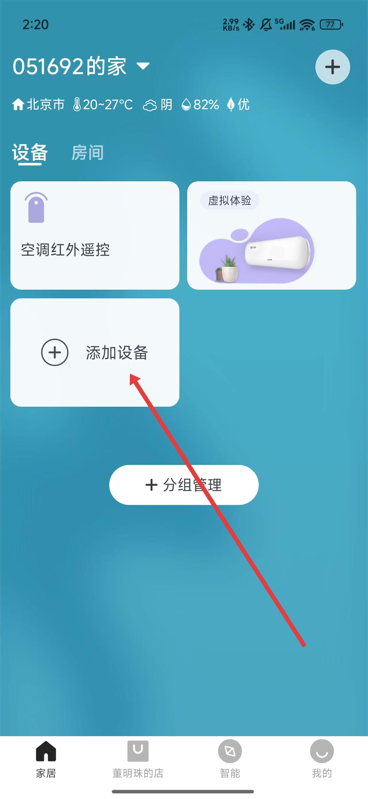 1、在格力app主页面中,点击添加设备按钮,进行设备添加操作。