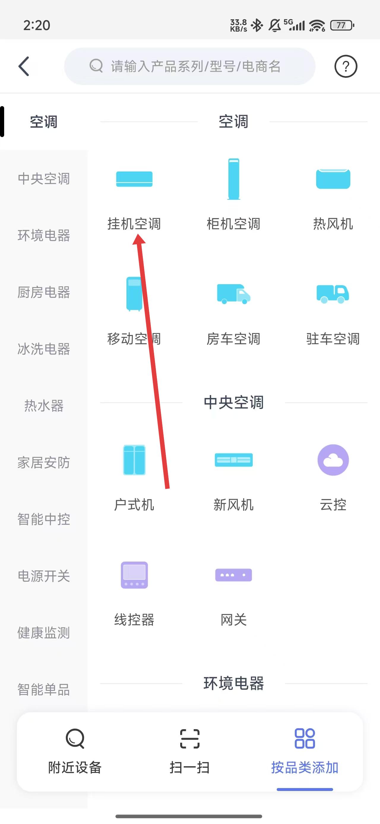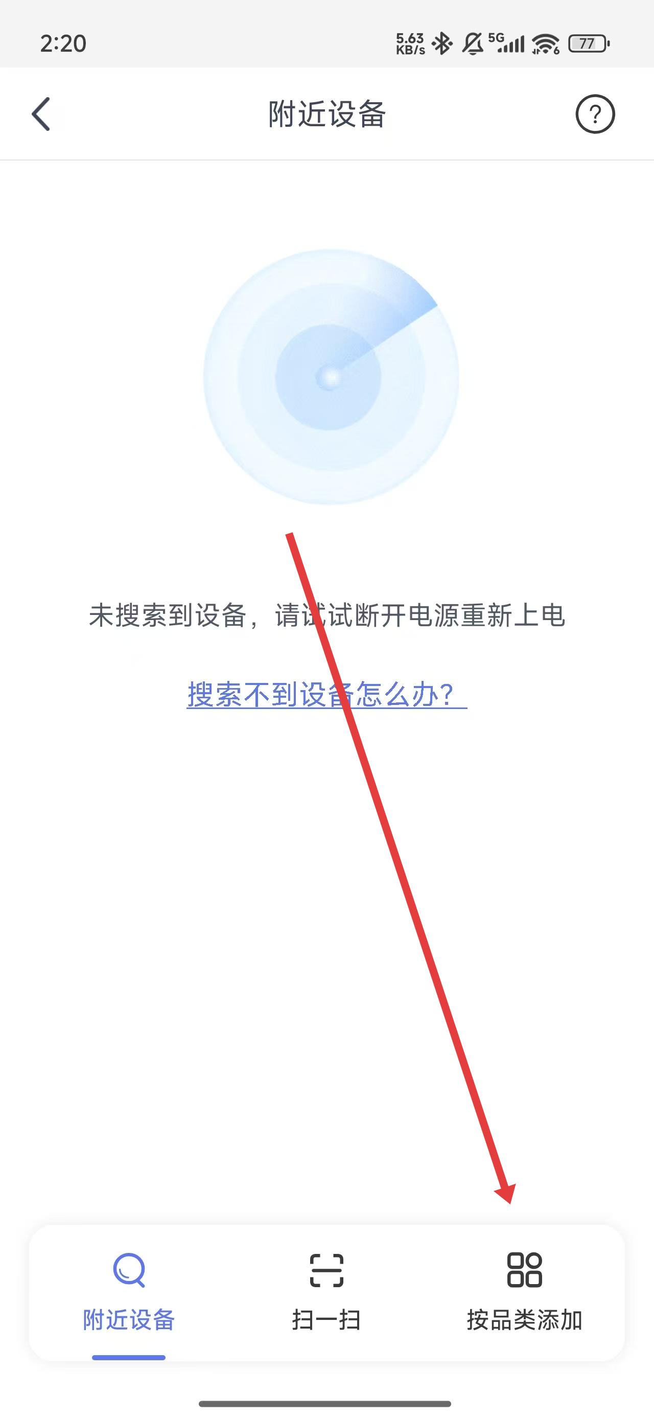 2、若没有搜索到附近设备的话,可以点击底部按品类添加按钮。