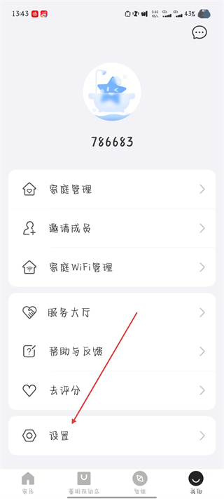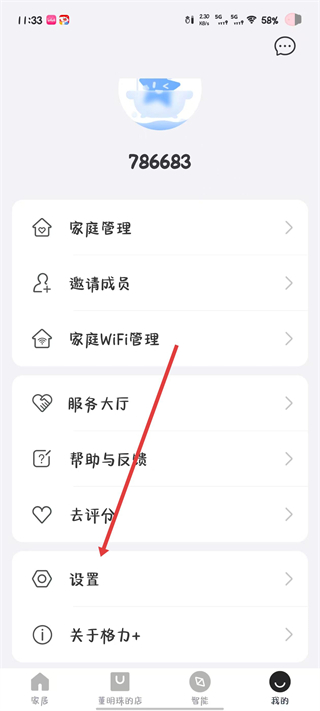 1、打开格力+应用的我的页面,找到设置选项并点击,进入应用的设置界面。