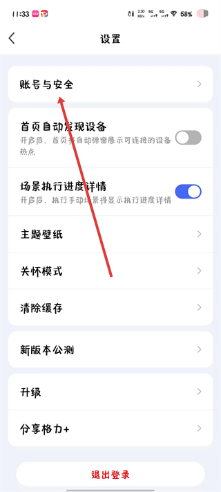2、在设置界面中选择账号与安全选项,点击该选项进入账号安全相关设置页面。