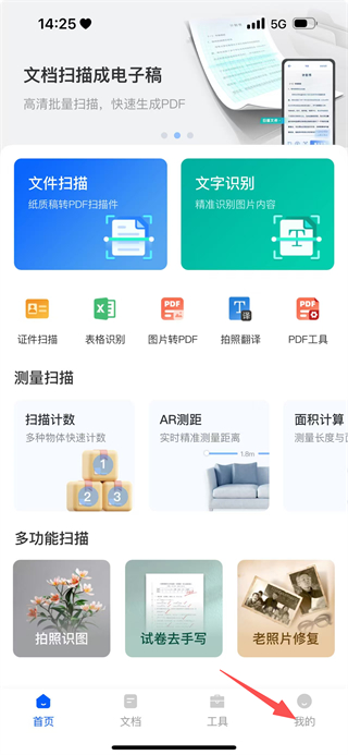 2、在风云扫描王首页,点击底部的我的选项,进入个人页面。
