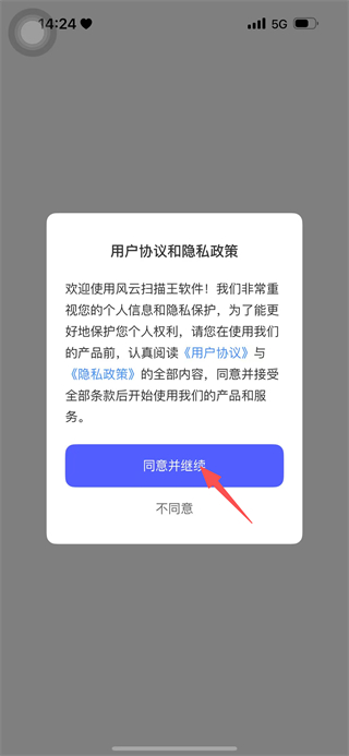 1、在用户协议和隐私政策弹窗中,点击同意,进入应用首页。