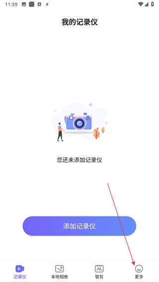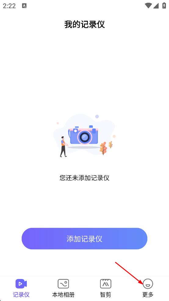 1、打开录风者应用的记录仪页面,点击导航栏最右侧的更多选项,进入更多功能页面。