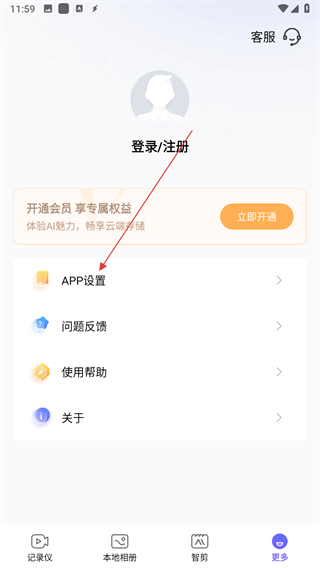 2、在更多功能页面点击APP设置选项,进入设置页面。