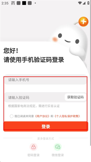 3、填写手机号、获取并输入验证码,勾选协议后点击登录,完成账号注册。