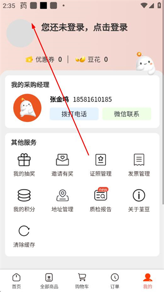 1、在荃豆健康app的首页,点击底部我的选项,进入个人中心页面。