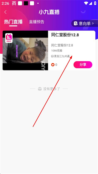 2、在小九直播页面的热门直播板块,选择想要观看的直播。