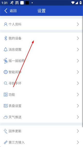 2、在设置页面选择我的设备选项,进入设备管理页面。
