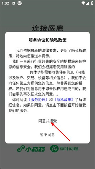 1、在使用协议隐私政策弹窗中点击同意按钮,进入登录页面。
