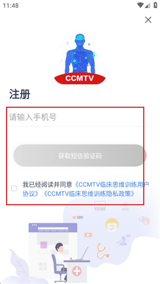 4、在注册页面,填写信息并勾选协议,进入验证码填写页面。